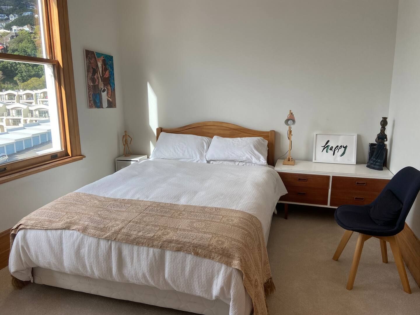 A beautiful family home with stunning views of the harbour from every room. Suitable for professionals or tourists visiting or attending events in Wgtn. Walking distance to the beach, central city, cafes & restaurants and Sunday market. 2 bedrooms, 2.5 bathrooms, office, 2 lounges, sep dining, gourmet kitchen, butler's pantry, sgl garage. In a quiet neighbourhood, shared access path with steps. Close to nearby reserve & Mt Victoria lookout. Please note this is our family home. No parties.